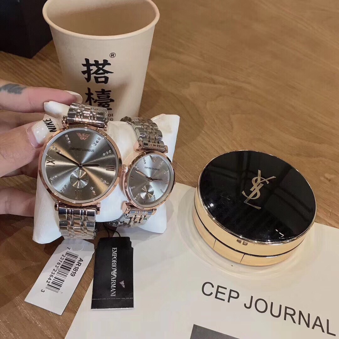Armani, the fashion capital of Italy, leads the trend in Milan. The overall design is small and slender, with a rounded outline that perfectly enhances the wearer's charm; The gentle and subtle pearl fritillaria, combined with the three-dimensional pointer, shines against each other, and is crafted with meticulous polishing, presenting an extraordinary taste of flowing light and brilliance. The strap adopts a butterfly shaped buckle, which fits the wrist better and enjoys excellent quality. Size 32mm * 9mm+40mm * 9mm