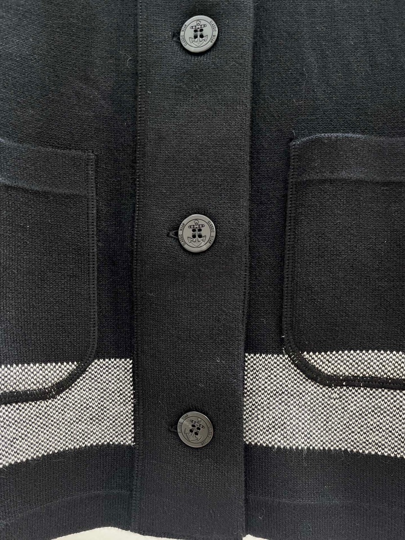 Exclusive Launch ❤️ Duo * 23 Early Autumn New Product Small Polo Collar Single breasted Knitted Small Coat! College style and versatile temperament are unparalleled! Advanced black and gray striped color scheme! Imported machine woven knitting process. Classic retro trendy and youthful girl temperament. Customized ship anchors ⚓ Button, workmanship quality depends on details, one color, 3 sizes